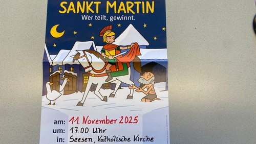 Sankt Martin Laternenumzug ab Kath. Kirche Maria Königin anschl. Friedensandacht